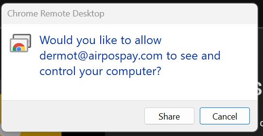 Once you click "Share," the AirPOS support member will be able to access your computer. You can now sit back and relax while we work on resolving your issue!
