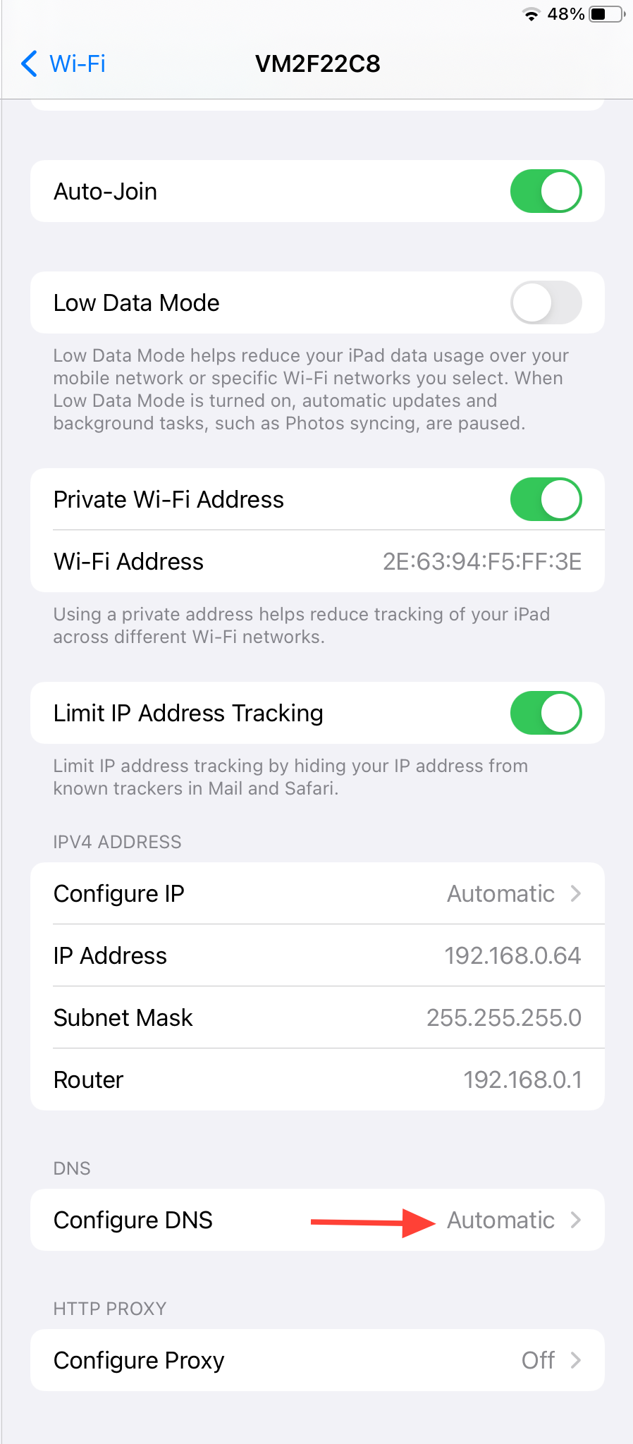 - Scroll down and tap on "Configure DNS."