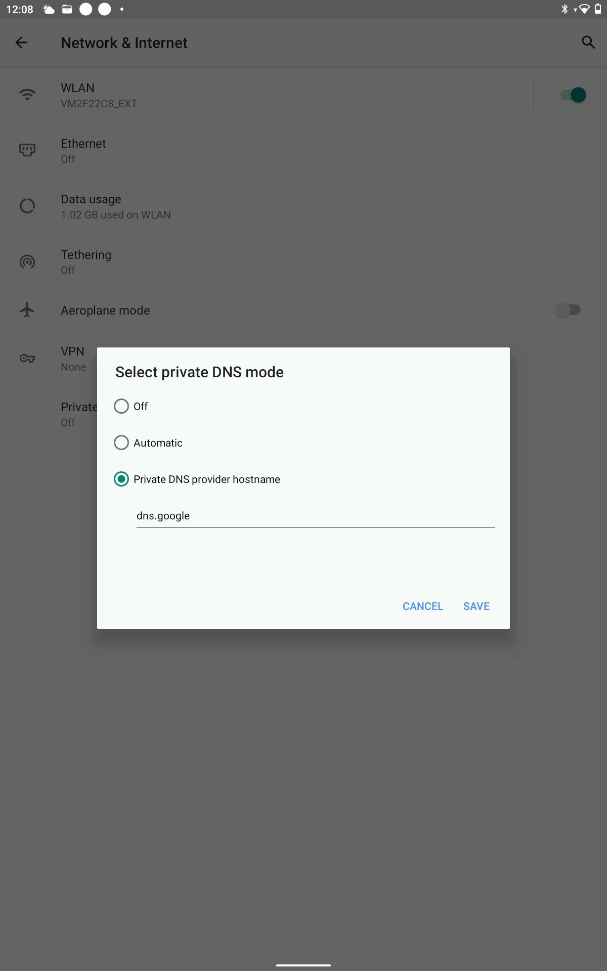 - Tap "Save" to confirm and apply the Private DNS configuration.