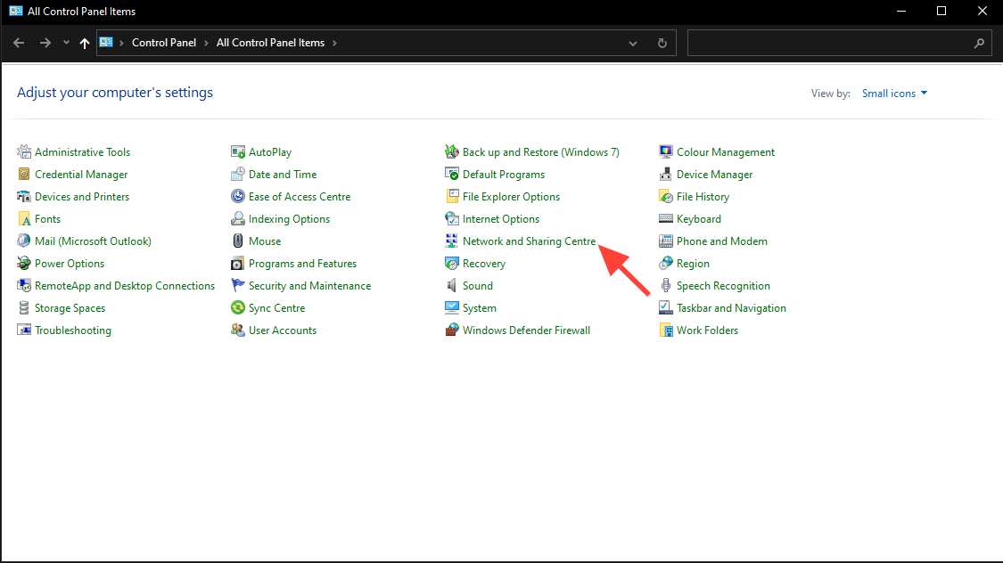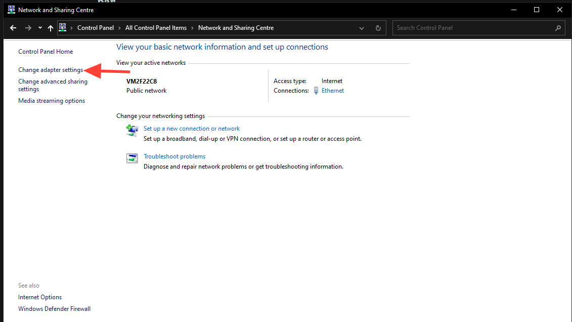 - Click on "Network and Internet" > "Network and Sharing Centre" > "Change adapter settings."