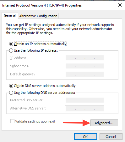 - In the next window, select "Advanced" and then go to the "DNS" tab.