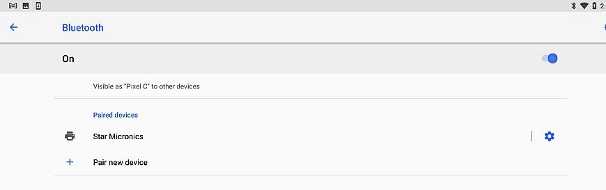 When you see your printer listed among available devices (it should be called Star Micronics) select it and your tablet will pair with it (if prompted for a PIN the default PIN IS 1234). Once connected the Bluetooth settings will list 'Star Micronics' among the Paired devices