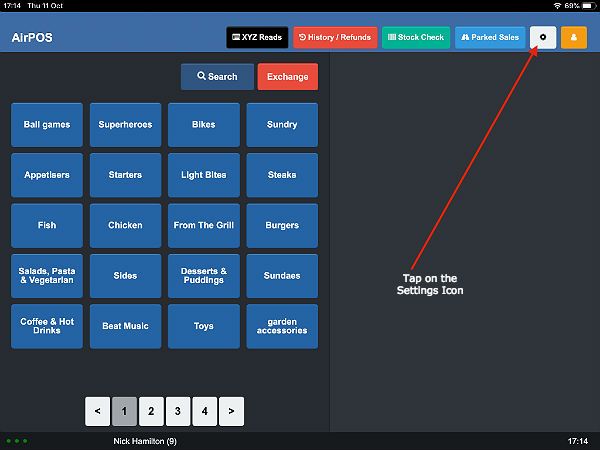 To configure your receipt printer to work with AirPOS on your iPad you'll need to open the AirPOS POS application and tap on the settings icon as shown below.