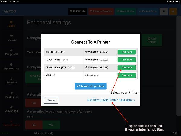 If yours is not a Star printer tap on the link 'Don't have a Star Printer? Setup Here' to add your printer manually.