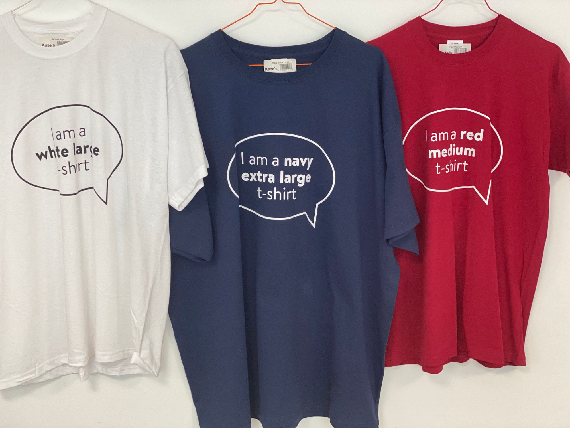 In the image below you can see that there are t-shirts of various sizes and colours (the prints are just to help illustrate what they are in this case and shouldn't be consider unique designs.)