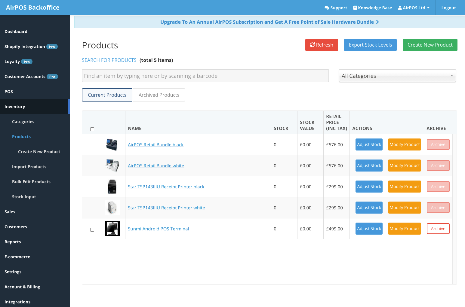 Okay with our category tree designed it's time to add our products to both AirPOS and Shopify...