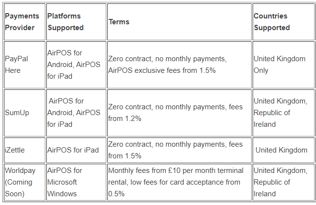 Our AirPOS point of sale system works with any payment processing provider as you can simply enter your card sales into the POS app. However if you are using a payment provider that we partner with for fully integrated payments you'll have a seamless and error proof solution allowing you to take your card payments directly from inside the AirPOS app with no double entry required on the device and POS.