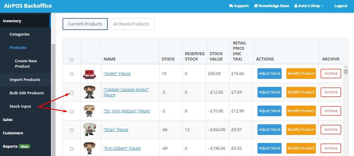 Archiving Multiple Items of Stock in the AirPOS Backoffice