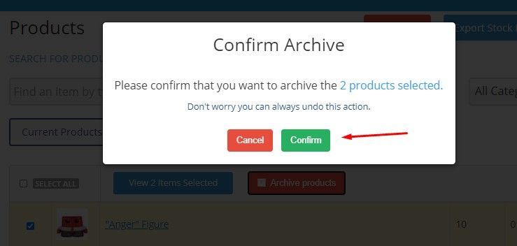 When you press the Archive Items button another window will open for you to confirm the archive.