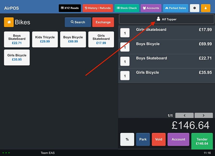 When you see the customer you are looking for tap on their name and they will be attached to the transaction.
