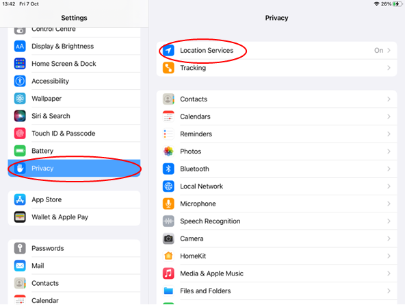 - Within Privacy, Tap on Location Services