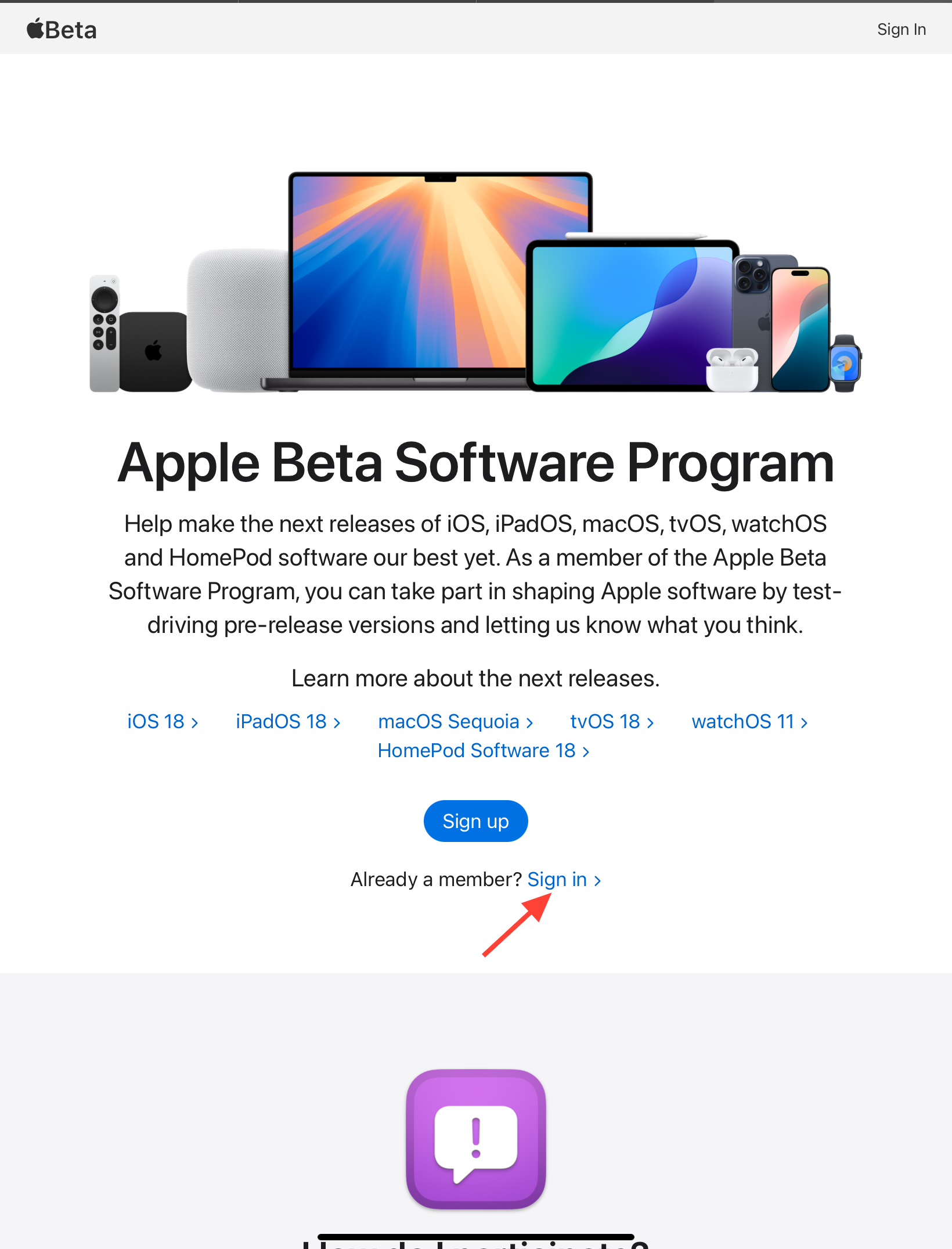 - On your iPad, open Safari and visit the Apple Beta Software Program.