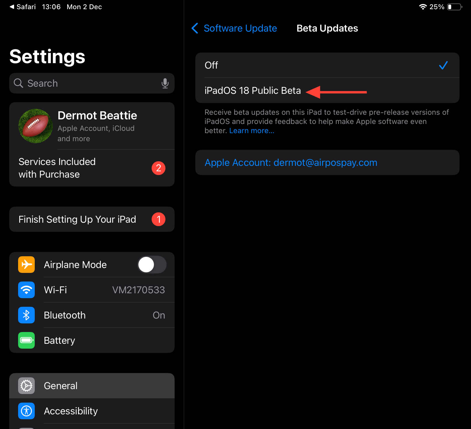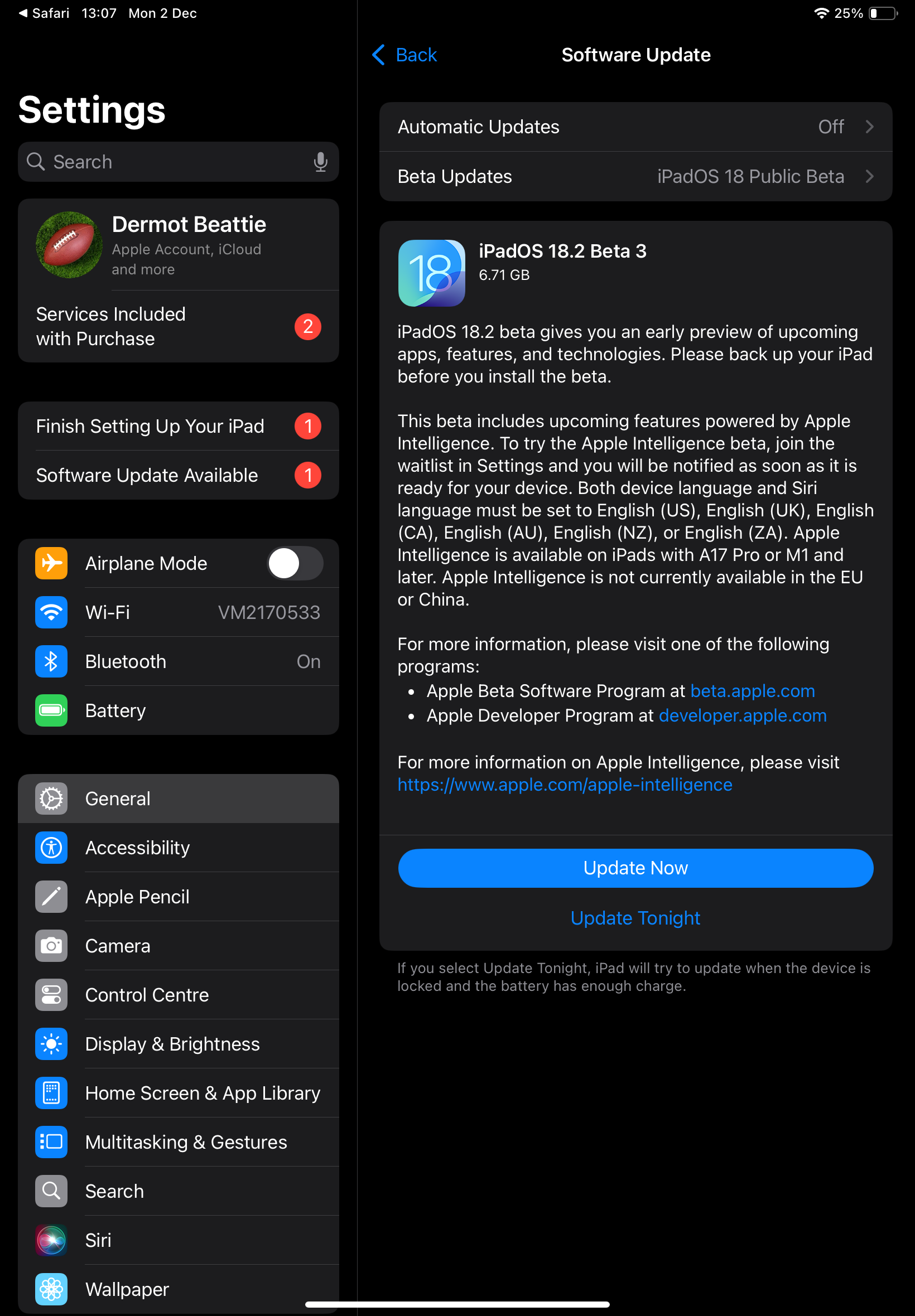 Please note While your iPad is updating to the new IOS beta version you will be unable to use the device until it is complete.