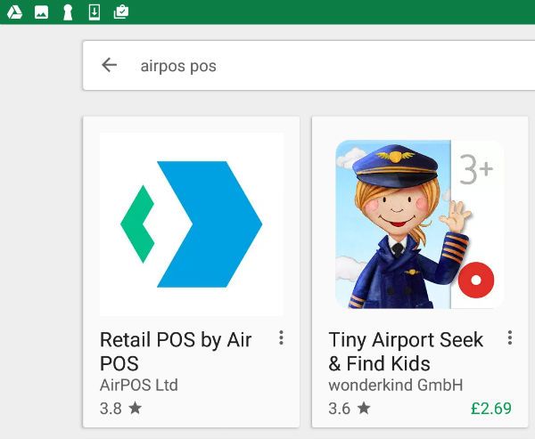 In 'Top Charts' in the Play Store tap on the search icon at the top right of the screen and search for AirPOS.