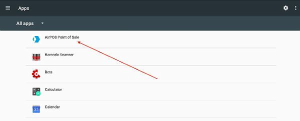 When you tap on 'Apps' or 'Application Manager' all installed apps will be listed. Tap on the AirPOS app.