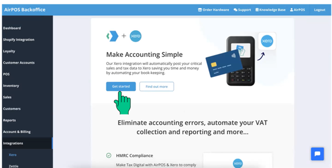 In order to proceed, you need to connect your Xero account to your AirPOS account. This connection allows seamless sharing of information between the two accounts. To begin click the 'Get started' button which will then bring up a Xero Login page.
