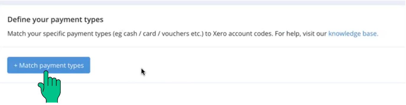 Now, let's define your payment types. Start by selecting the payment types you accept in your business and matching them with the appropriate Xero bank account. Click 'Match payment types' to begin.