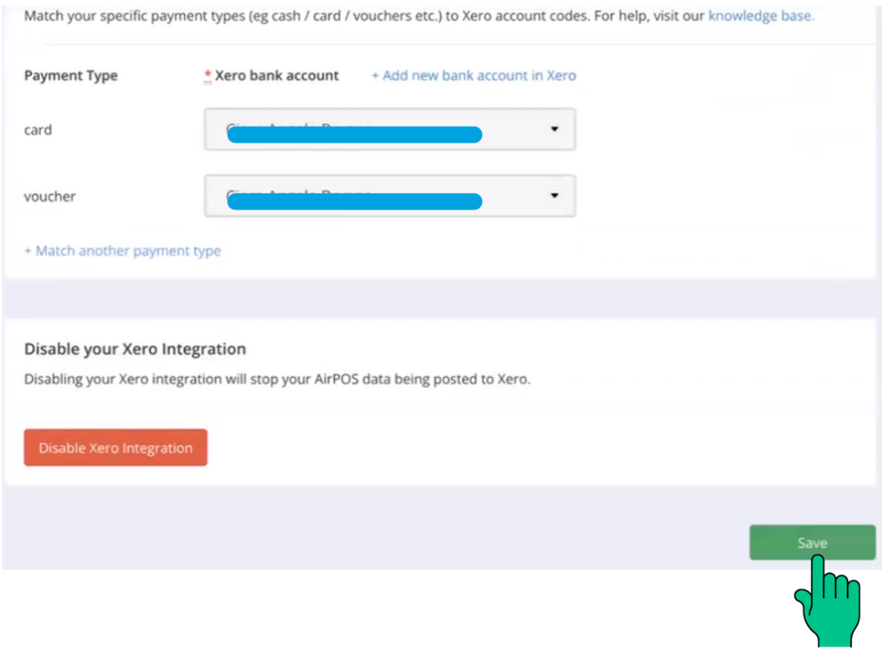 Now that you've completed each section of the Xero integration, it's time to save your data. Click on the green 'Save' button located in the bottom right corner of the screen.