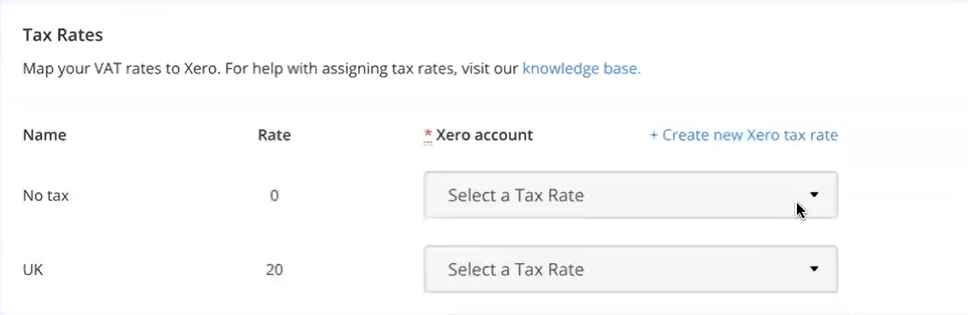 You can also create new Tax rates in your Xero account by clicking the link located at the top right of this section. This will take you directly to the page you need in Xero to do this, saving you from having to navigate there yourself!