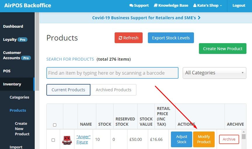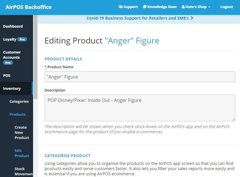 Modifying items is very similar to Adding Items in that the same interface and item requirements apply. Modifying many aspects of an item is a simple case of replacing the information in the text boxes with new information, then saving it by tapping the ‘Update Item’ button at the bottom of the page. This method is useful for replacing information in the following aspects: