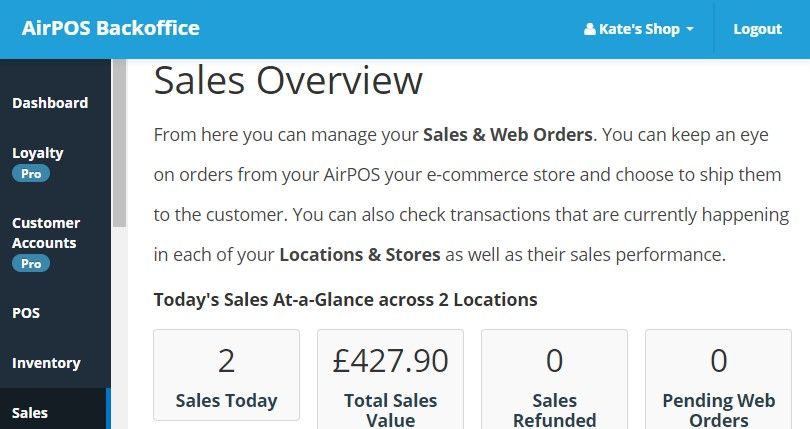 You can now view any Z read totals you’ve performed on the POS, directly from the AirPOS backoffice on your ‘Detailed Daily Sales’ screen as shown below;