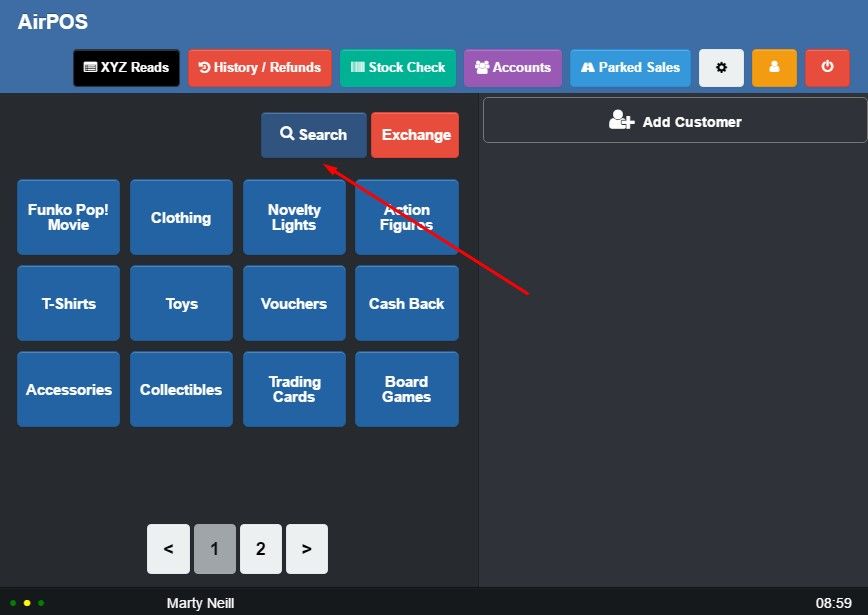 To perform a product search in AirPOS, simply enter either a complete product name or partial product names as shown below: