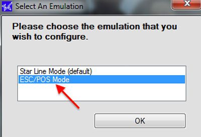When you double click on the utility, it may take several moments and seem to not be doing anything, but a small modal window appears. Highlight ESC/POS Mode and click OK.