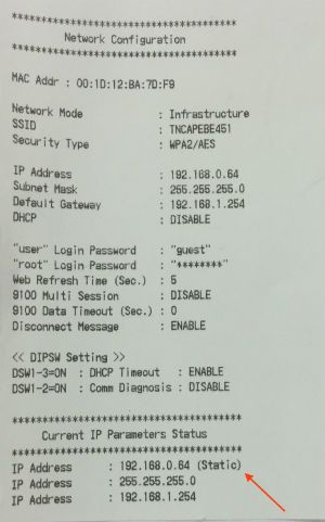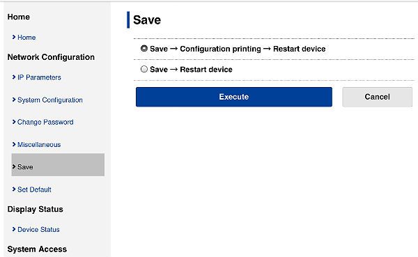 Press the execute button. This will save the settings and reboot the printer which will self print it's connection settings. Beside IP Address it should now read (Static) on the self print.