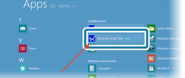 On Windows 10 tap on the icon to show All apps and locate 'Star Micronics' as shown below.