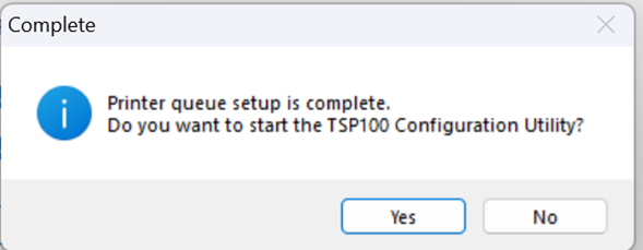 Click on 'Star Micronics' to expand it and select 'Configuration Utility TSP100'. After a few moments a popup like the one shown below will appear.