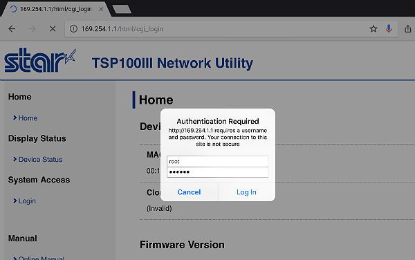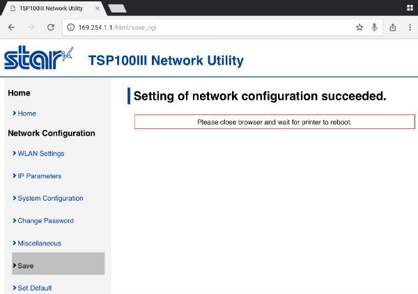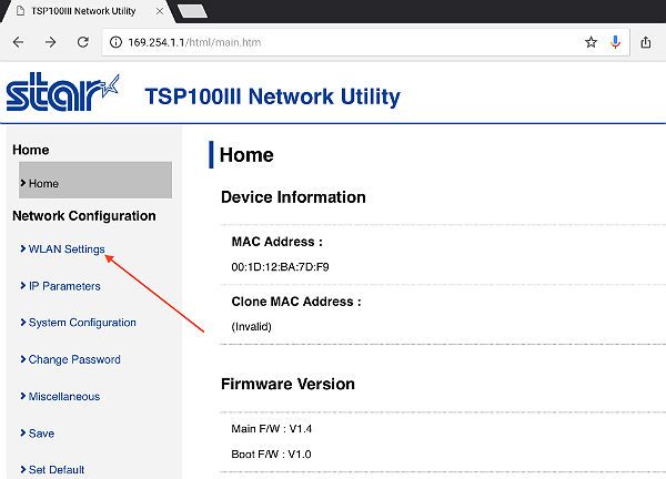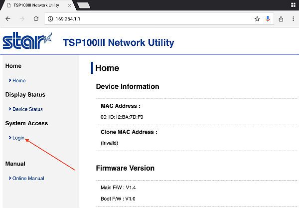 Open a browser and type in the address entry field 169.254.1.1 (This is the factory default IP Address of the printer and the address after a factory reset). If the iPad can't find the 'TSP100III Network Utility' with that IP Address is may be necessary to change the IP Address of the iPad manually in the Wi-Fi settings. To do this open the Wi-Fi settings on the iPad and tap on the blue ' i ' in a circle to the right of your current network. Beside 'Configure Ip ' tap on 'Automatic' and select 'Manual'. At IP Address type in an IP that is close to but not the same as the printer's default IP Address such as 169.254.1.2