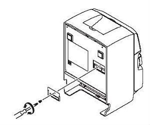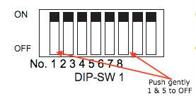 The first step is to set the printers dip switches. For this you'll need a small Phillips screwdriver. Switch the printer off. Underneath the printer is a small base plate fastened with a small Phillips screw as shown below. When you remove this plate you'll see two sets of dip switches, a set of 4 and a set of 8. In the set of 8 gently push number 1 and number 5 towards the numerals printed below, into the off position.