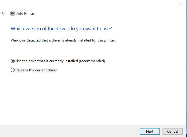 A progress bar will appear as Windows installs the printer and a driver window will open. Press next.