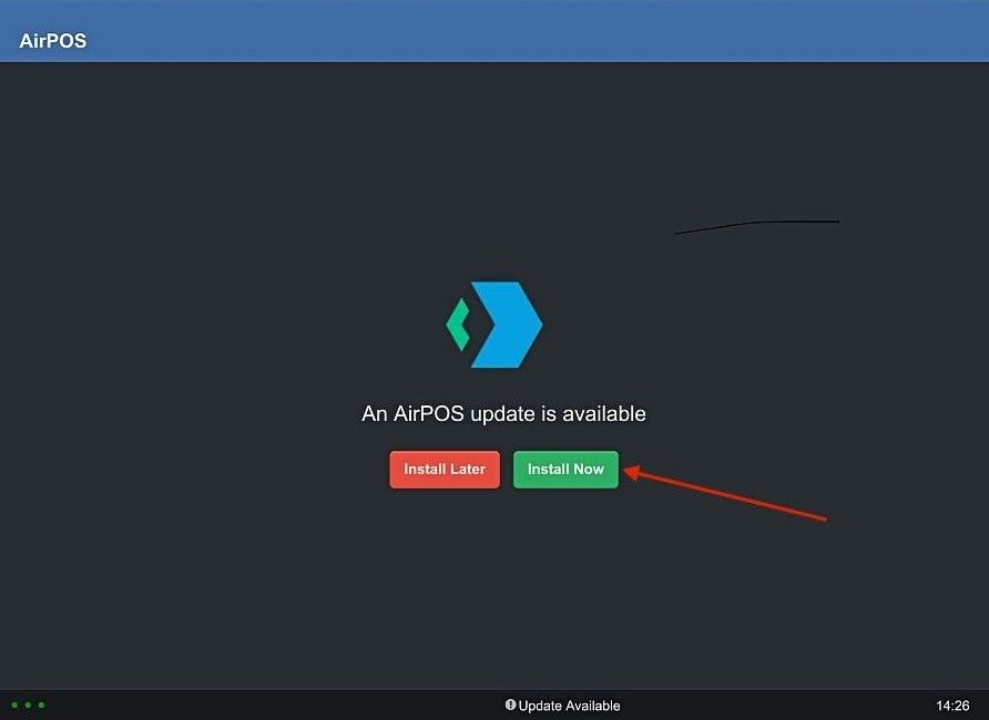 If you tap on that the POS screen will refresh and you'll see a button to install the Update. Tap on that button.