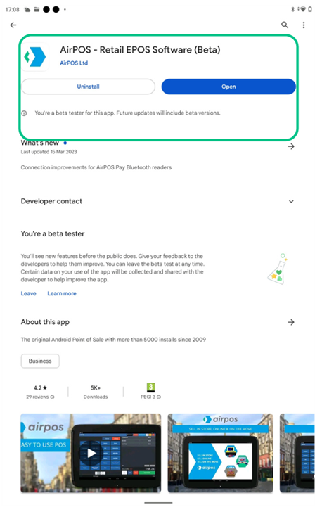 Congratulations! You've successfully updated your AirPOS app through the app store. Your app is now ready to deliver its best performance.