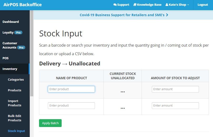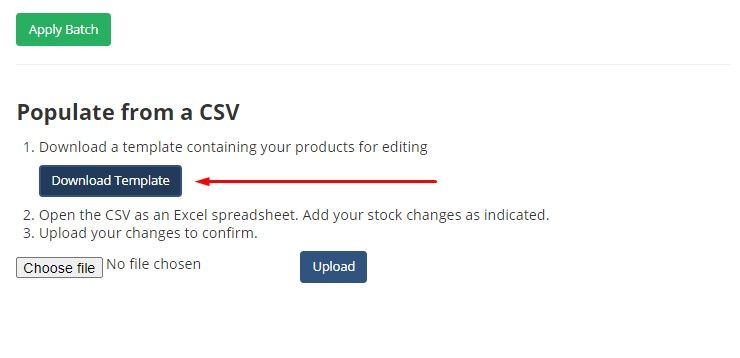 You can also upload stock quantities in bulk using our .CSV template which you can download at the bottom of the stock input screen.
