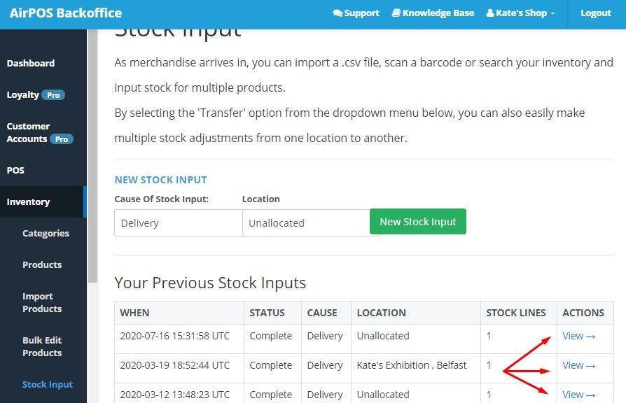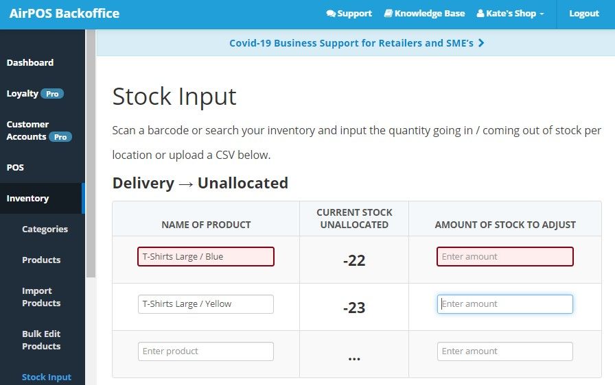 We know inputting stock levels for multiple items can be a real pain so we’ve created a tool to make this a much simpler and more seamless process. As merchandise arrives in, you can import a .csv file, scan a barcode or search your inventory and input multiple stock levels in one go.