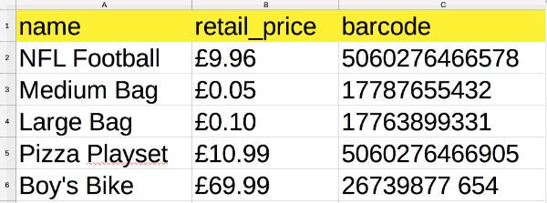 Your file will need to contain all of the information that you require on your labels. Typically this would include the name of the product, the barcode number and the price of the product. When imported into the Dymo software the printer will print this information and generate a barcode that corresponds to the number in your file. When you've finished creating your file save it and name it as a .CSV file.