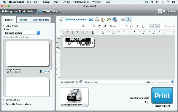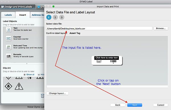 When you click or tap on the 'Next' button the dymo label printer is ready to start printing your labels. Just tap or click on the 'Print' button and the labels will be printed one by one until the end of the input file.