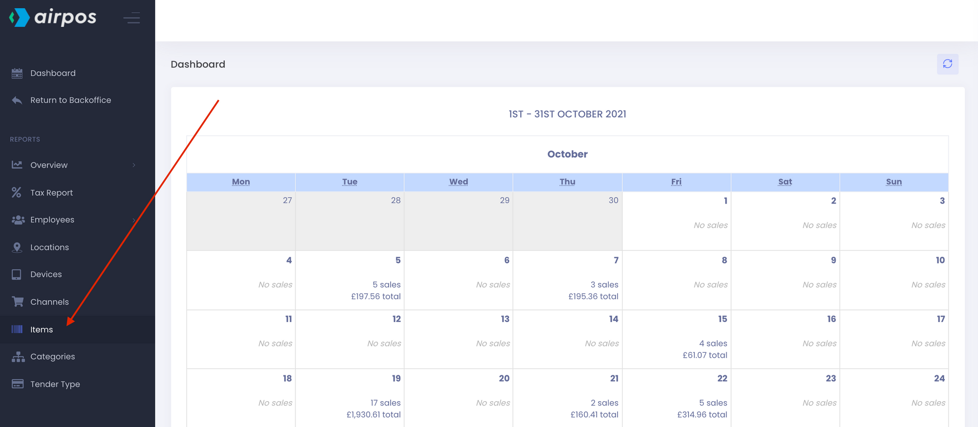 You can view your top selling products by selecting ‘Reports’ from the left navigation panel of the backoffice. This will present you with a calendar view of the current month's sales.