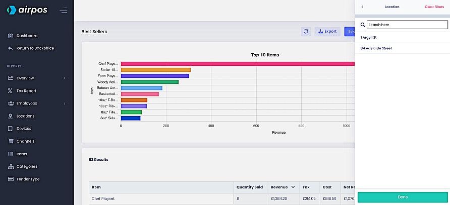 Select the location for which you want the report and press the 'Done' button at the bottom of the dropdown.