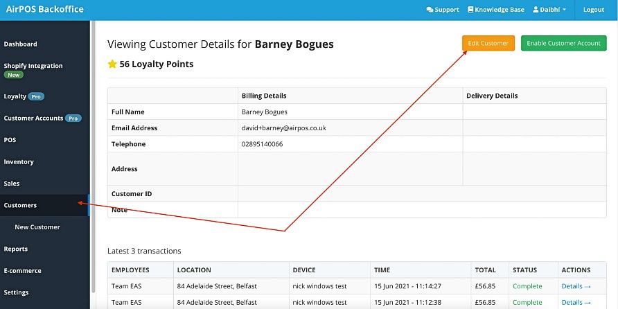 Select the orange 'Edit Customer' button in the top right-hand corner of the screen. This will take you to the customer’s information.