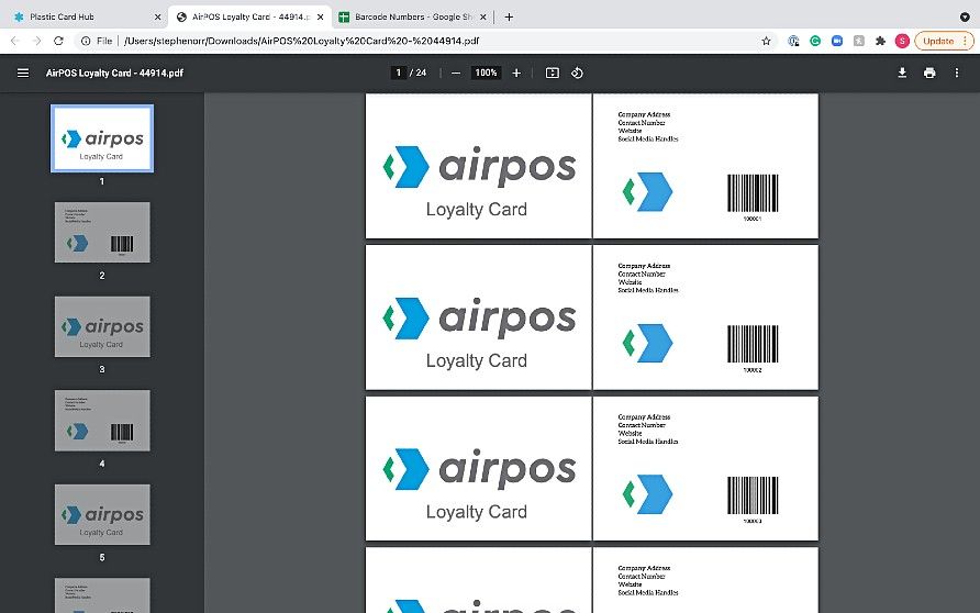 If you are using the Loyalty Scheme feature with AirPOS Pro you may wish to provide your customers with a loyalty card which will link to their account. You can setup your AirPOS loyalty cards with plasticcardhub.com by going to the link below.