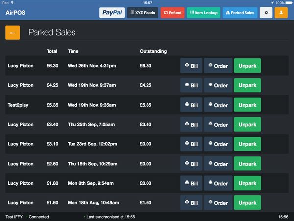 The sale will then appear in a list of Parked Sales which you can access by pressing the Parked Sales button in the main navigation of the AirPOS POS App.