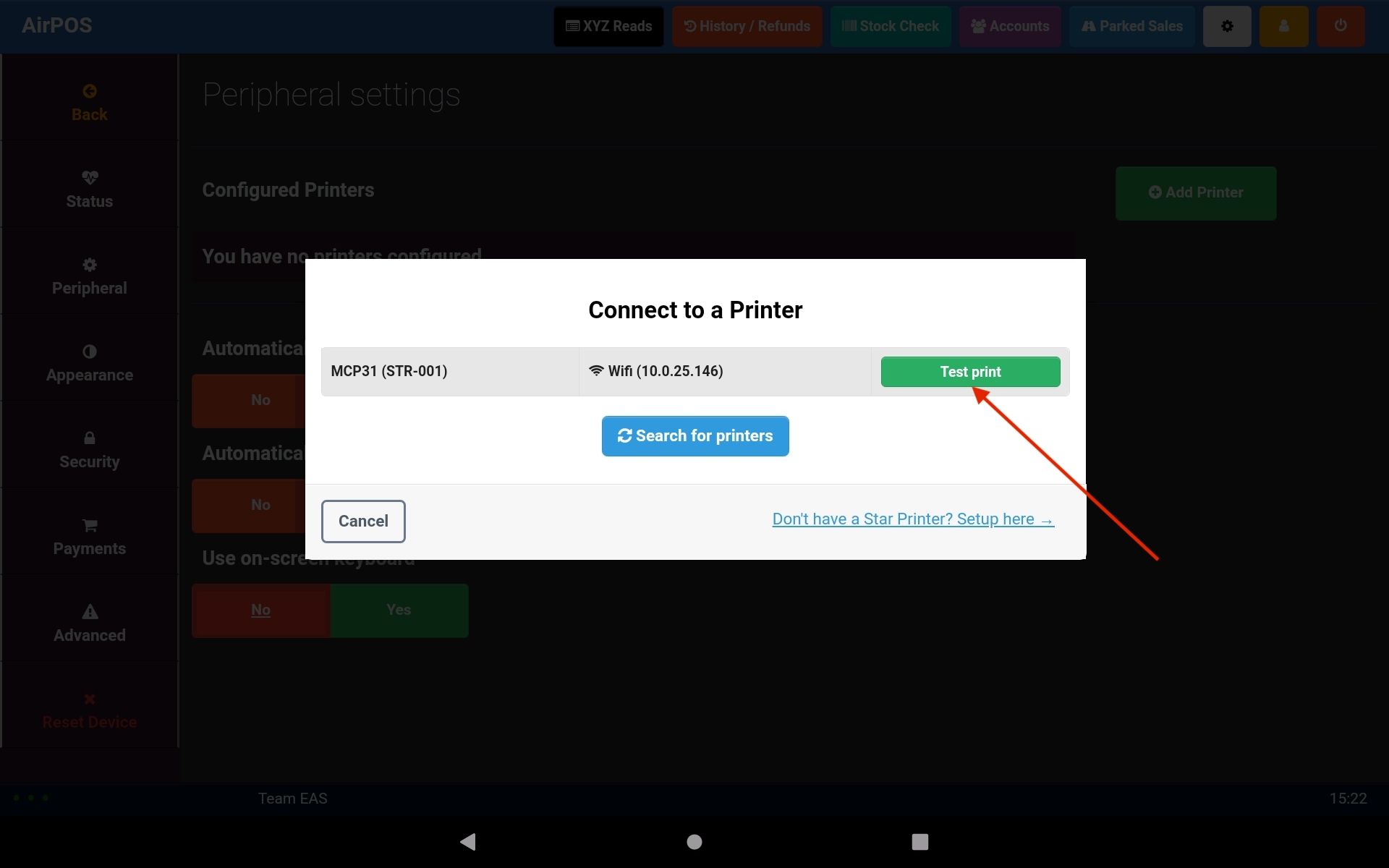 Setting up the Star MC-Print3 Receipt Printer for use with AirPOS on Android