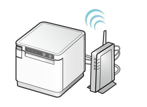 Connect the printer to your router with an ethernet cable and power on the printer. There should be a solid blue light when the printer is switched on and a solid green light when the printer is connected to the router and is online.