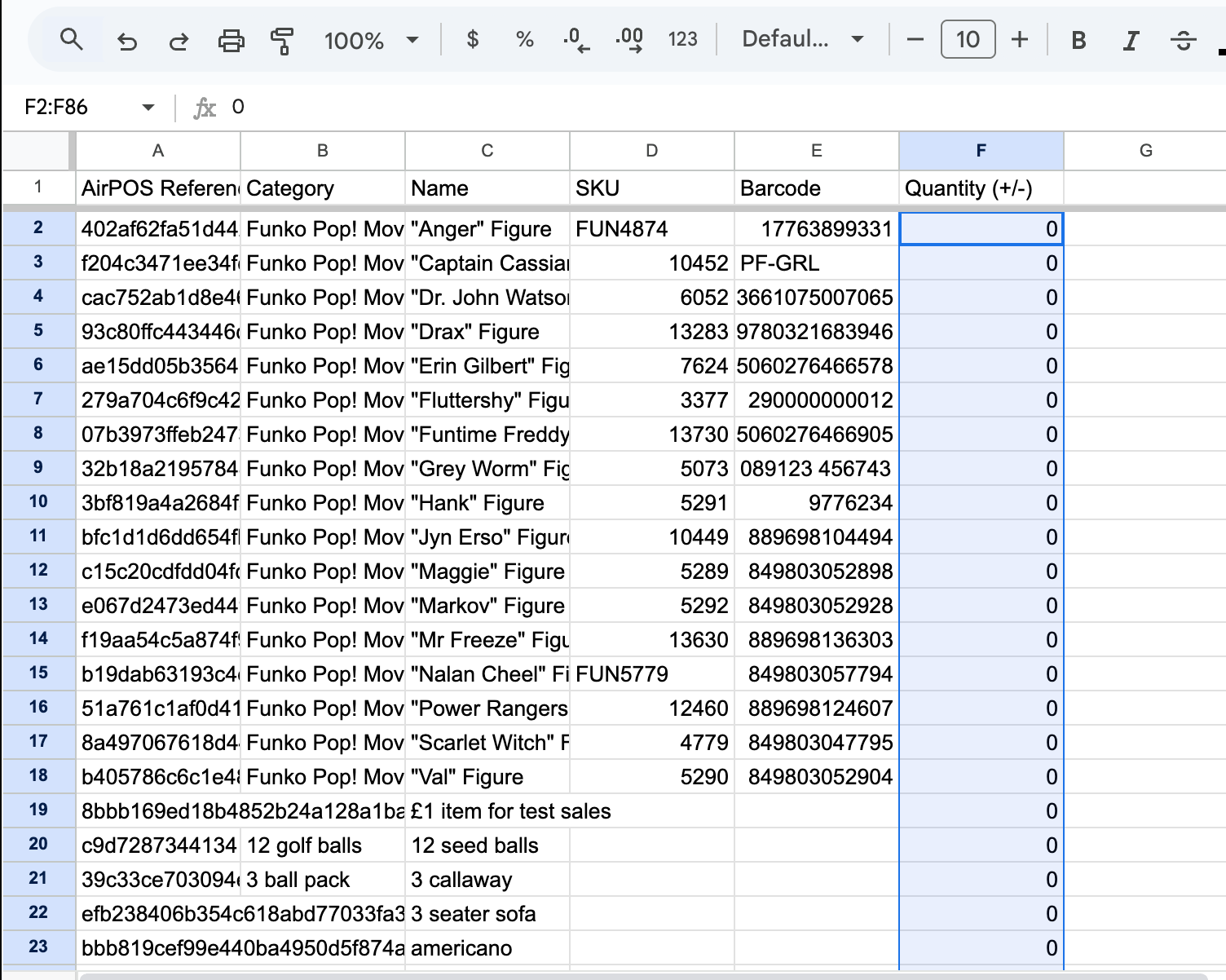 Press 'OK' and the file column will be populated with the inverse values of your stock level report ready to upload.