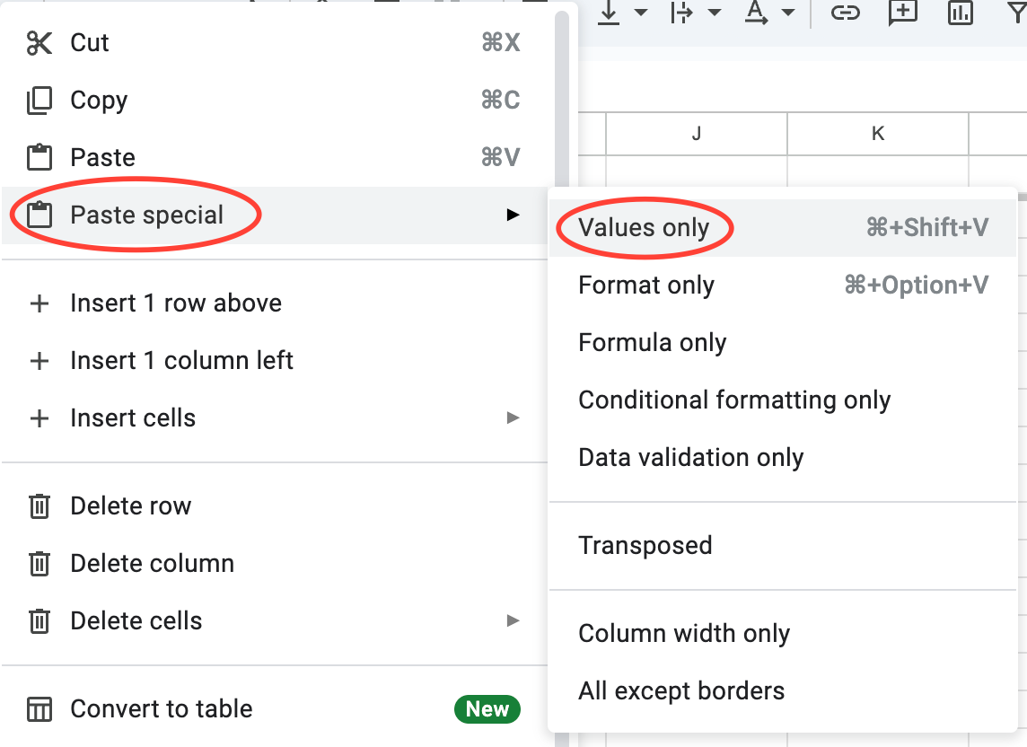 To ensure you copy the correct details across to your new file please select all of the cells in the file that you are pasting into and right click. A popup like the image below will appear. Select the option to 'Paste Special' and then select 'Values only'