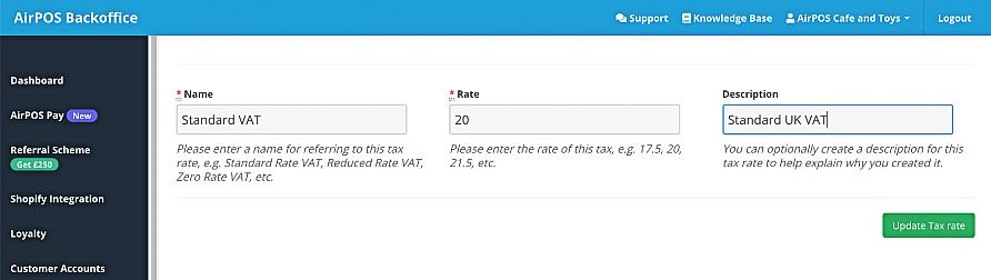Press the green 'Update Tax rate' button and all the products at the temporary rate of 12.5% will now be on the Standard rate of 20%.