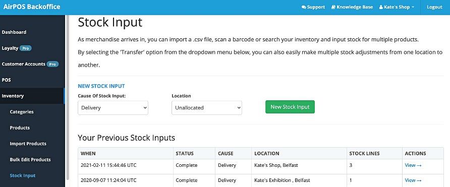 You may have noticed that when you visit the 'Stock Input' screen under 'Inventory' from the left margin of the backoffice the 'Location' for the stock input is pre-populated with 'Unallocated'.